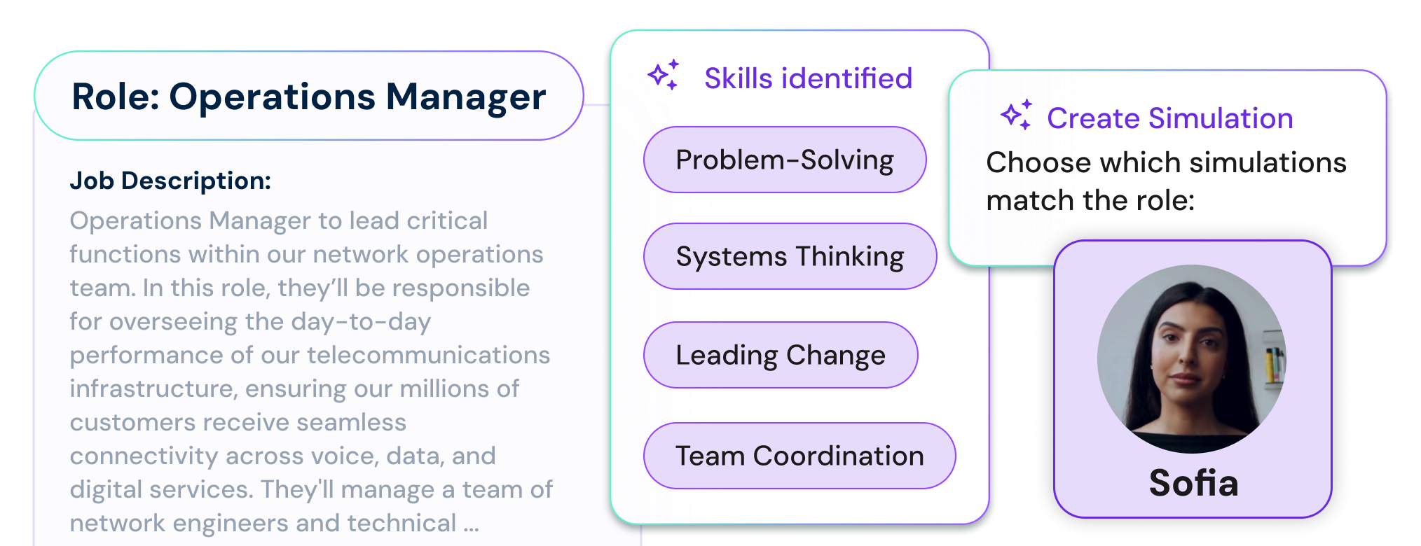 Rapidly define the roles, skills and contextual demands that matter. AI-enabled role profiling links to skills frameworks and an intelligent simulation engine let you build tailored, job-specific simulations that are realistic, relevant and predictive.