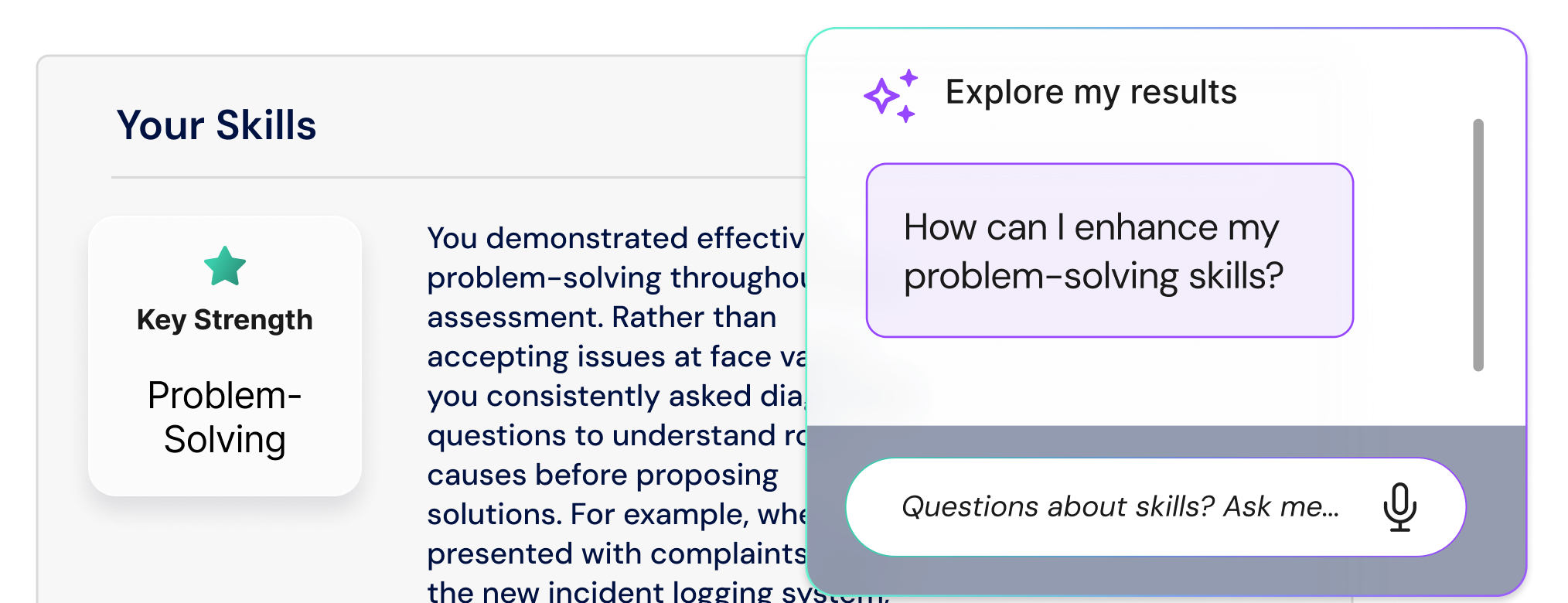 Adaptive, avatar-based interviews, where candidates respond to questions in real time, with interactions that adapt based on their answers.